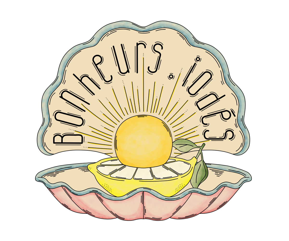 Toutes les illustrations de Bonheurs Iodés sont signées Claire Napolitano. Le coquillage, le soleil-citron, la coquille rose : son trait, sa main.
